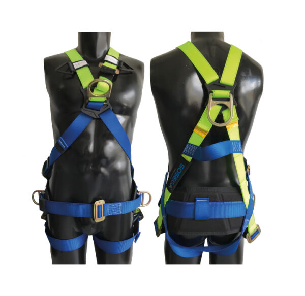 Arnés multipropósito de 4 puntos de anclaje con argollas en acero forjado, uno en la espalda para detención de caídas, 2 laterales en la cintura para posicionamiento a un punto fijo y una frontal para ascenso y descenso controlado. Ajuste pectoral, regulable en muslos y hombros, cinta sub-pélvica que permite comodidad y reposo, distribuyendo correctamente la fuerza de impacto en una caída, cuenta con una mariposa ergonómica dorsal; fácil postura e incluye caja con instrucciones Especial para trabajo en andamios, escaleras, tanques y construcción.