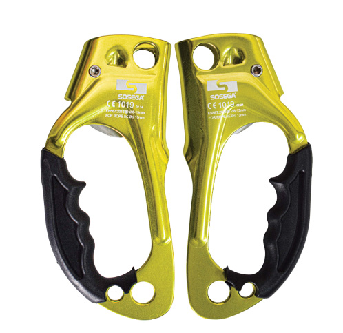Freno de ascenso para puño hecho en aluminio, bien sea para mano derecha o mano izquierda para cuerdas entre 8 y 13 mm.