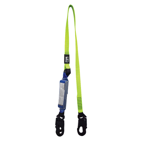 Eslinga reata amortiguador dieléctrica doble mosquetón pequeño, puede usarse en trabajos enfrentados a riesgos eléctricos con una resistencia máxima de 9000V. Está diseñada para disminuir la fuerza de detención que recibe un trabajador en la eventualidad de una caída libre, mediante el desgarramiento de la cinta interior. Posee una cápsula termocontraible transparente para una mejor inspección del equipo. Forma parte de un sistema personal de detención de caídas que cumplen y exceden los requerimientos de normas nacionales e internacionales.