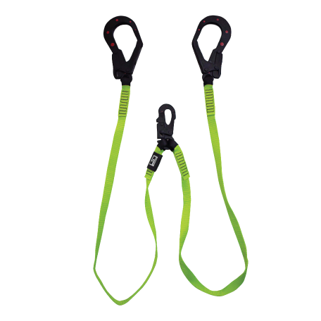 La Eslinga reata en Y dieléctrica un mosquetón pequeño dos mosquetones grandes tiene por objetivo restringir o limitar el movimiento del usuario en la eventualidad de una caída libre. Puede usarse en trabajos enfrentados a riesgos eléctricos con una resistencia máxima de 9000V. Es recomendable utilizarla con un sistema disipador de energía o amortiguador de impacto.