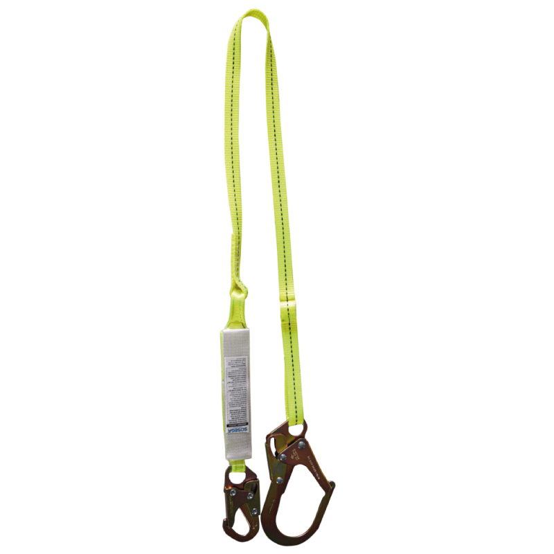 La Eslinga Reata amortiguador mosquetón pequeño y grande está diseñada para disminuir la fuerza de detención que recibe un trabajador en la eventualidad de una caída libre, mediante el desgarramiento de la cinta interior. Posee una capsula termo contraíble transparente para una mejor inspección del equipo. Forma parte de un sistema personal de detención de caídas que cumplen y exceden los requerimientos de normas nacionales e internacionales.