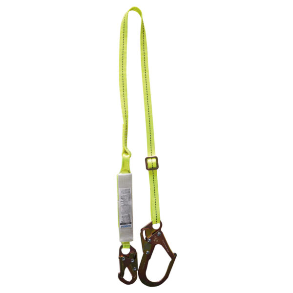 La Eslinga con amortiguador y reata regulable está diseñada para disminuir la fuerza de detención que recibe un trabajador en la eventualidad de una caída libre, mediante el desgarra-miento de la cinta interior. Posee una cápsula termo contraíble transparente para una mejor inspección del equipo. Forma parte de un sistema personal de detención de caídas que cumplen y exceden los requerimientos de normas nacionales e internacionales.