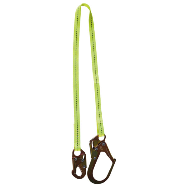 La Eslinga sencilla reata mosquetón pequeño y mosquetón grande tiene por objetivo restringir o limitar el movimiento del usuario en la eventualidad de una caída libre, es recomendable utilizarla con un sistema disipador de energía o amortiguador de impacto.