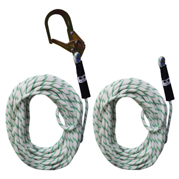 Línea de vida con ojo cosido plástico o puede venir con mosquetón estructurero desde: 10, 15, 20, 25, 30, 40, 50, 60, 70, 80 hasta 200 mts. Nota: La línea de vida se envía según color disponible en inventario, puede ser en rojo, verde, negro y/o azul.